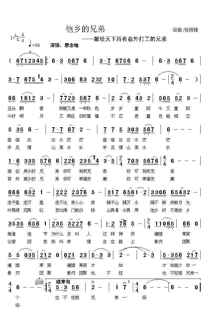 - [歌谱] 他乡打工的日子