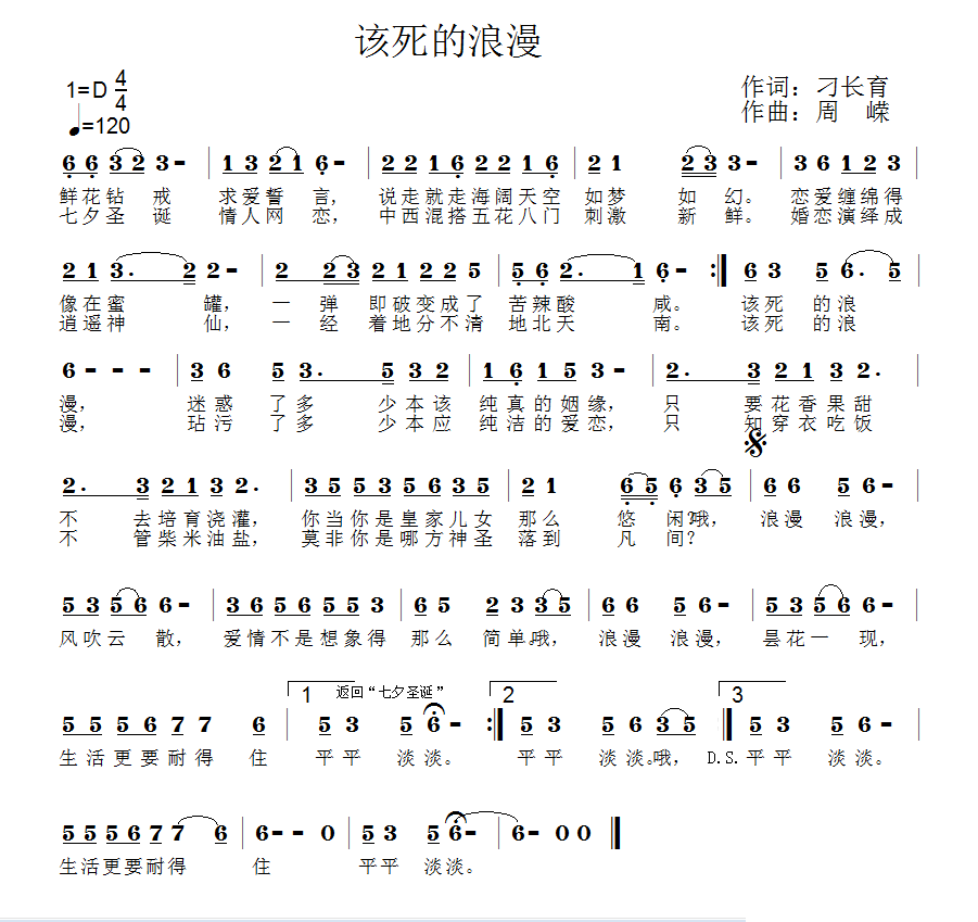 - [歌谱] 该死的浪漫