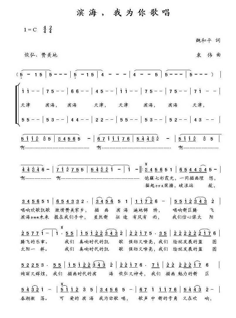 - [歌谱] 滨海 我为你歌唱