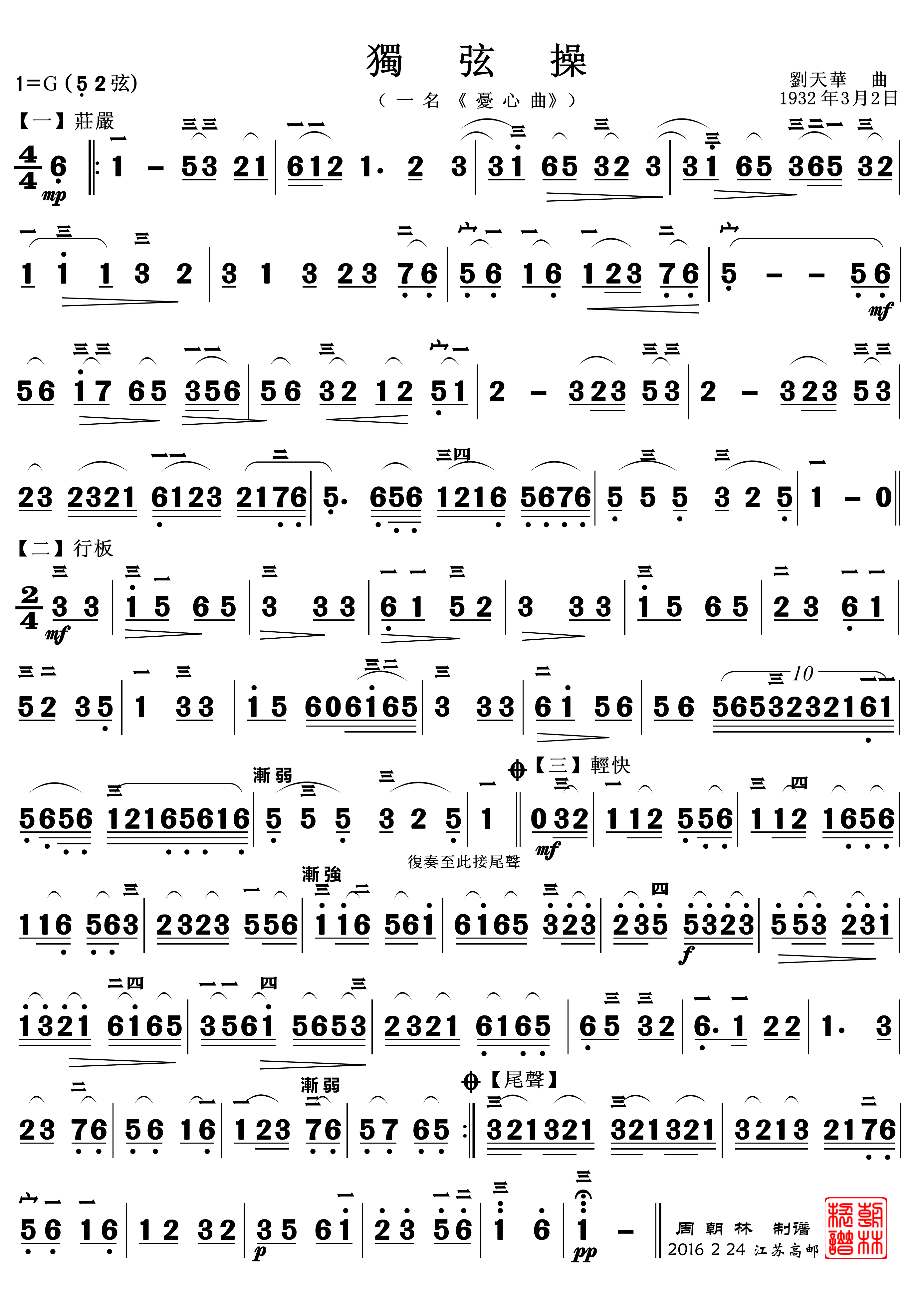 (1P 2776x3927 词曲:刘天华)
