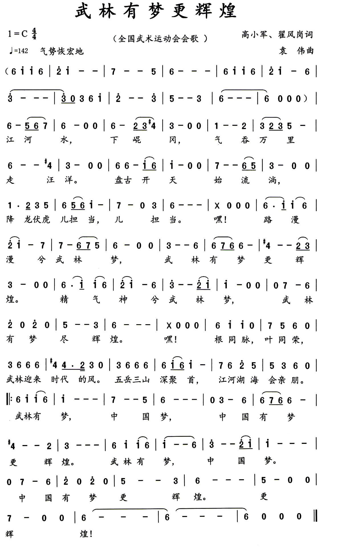 共圆精彩 中华人民共和国第十一届运动会会歌