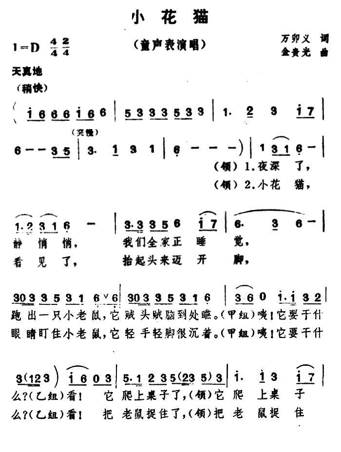 - [电子琴谱,歌谱,吉他谱] 小花猫