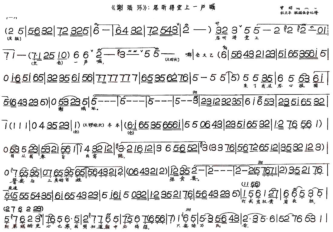 忽听得堂上一声喊 谢瑶环 选段 琴谱 京剧戏谱