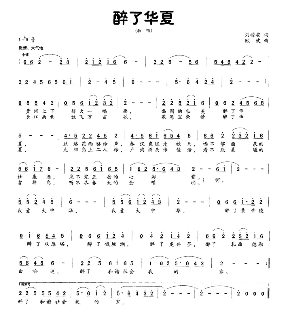 - [歌谱] 醉了 草原