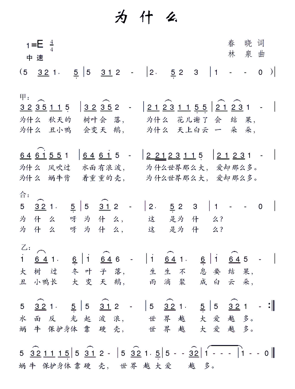 - [歌谱] 为什么 为什么