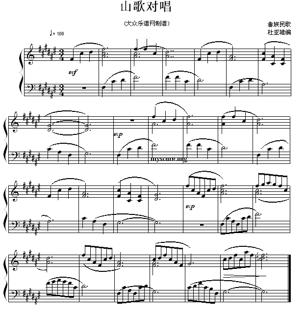 > 民歌钢琴小曲 畲族民歌 山歌对唱