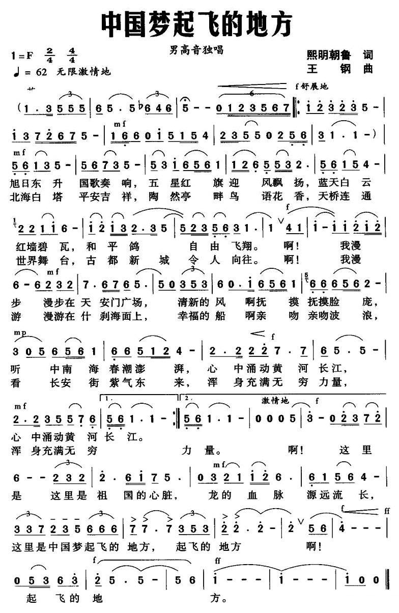 - [歌谱] 我的中国梦