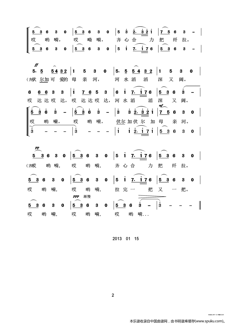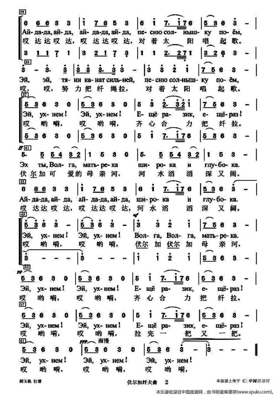 俄罗斯民歌 伏尔加纤夫曲 混声四部合唱 合唱谱
