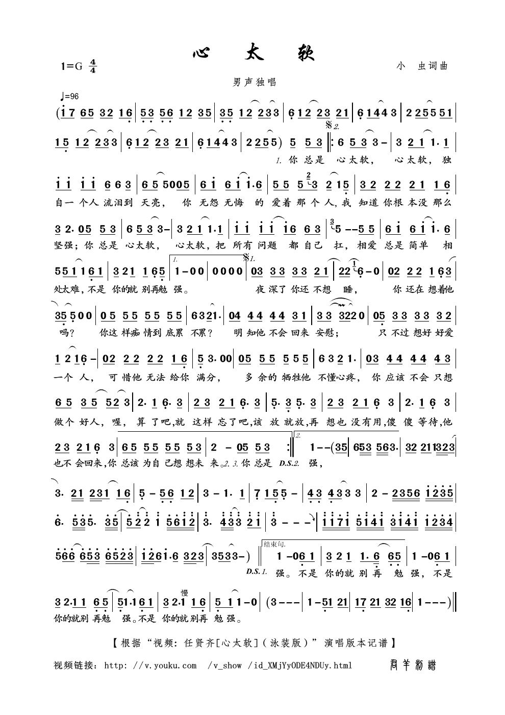 - [歌谱] 心太软 小 虫词曲