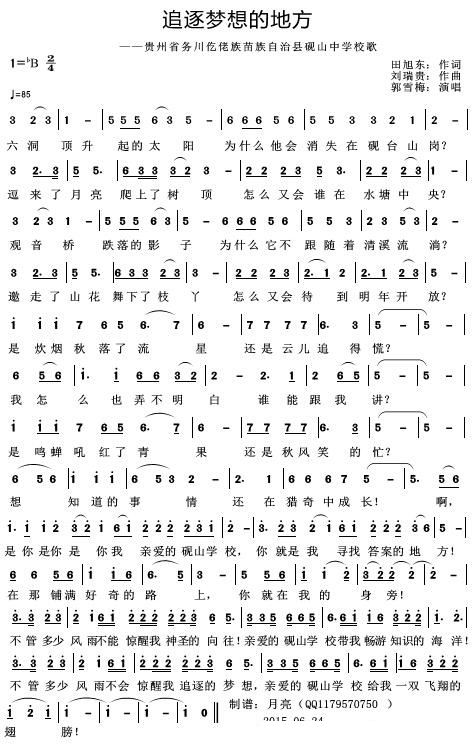 > 追逐梦想的地方 贵州省务川仡佬族苗族自治县砚山中学校歌