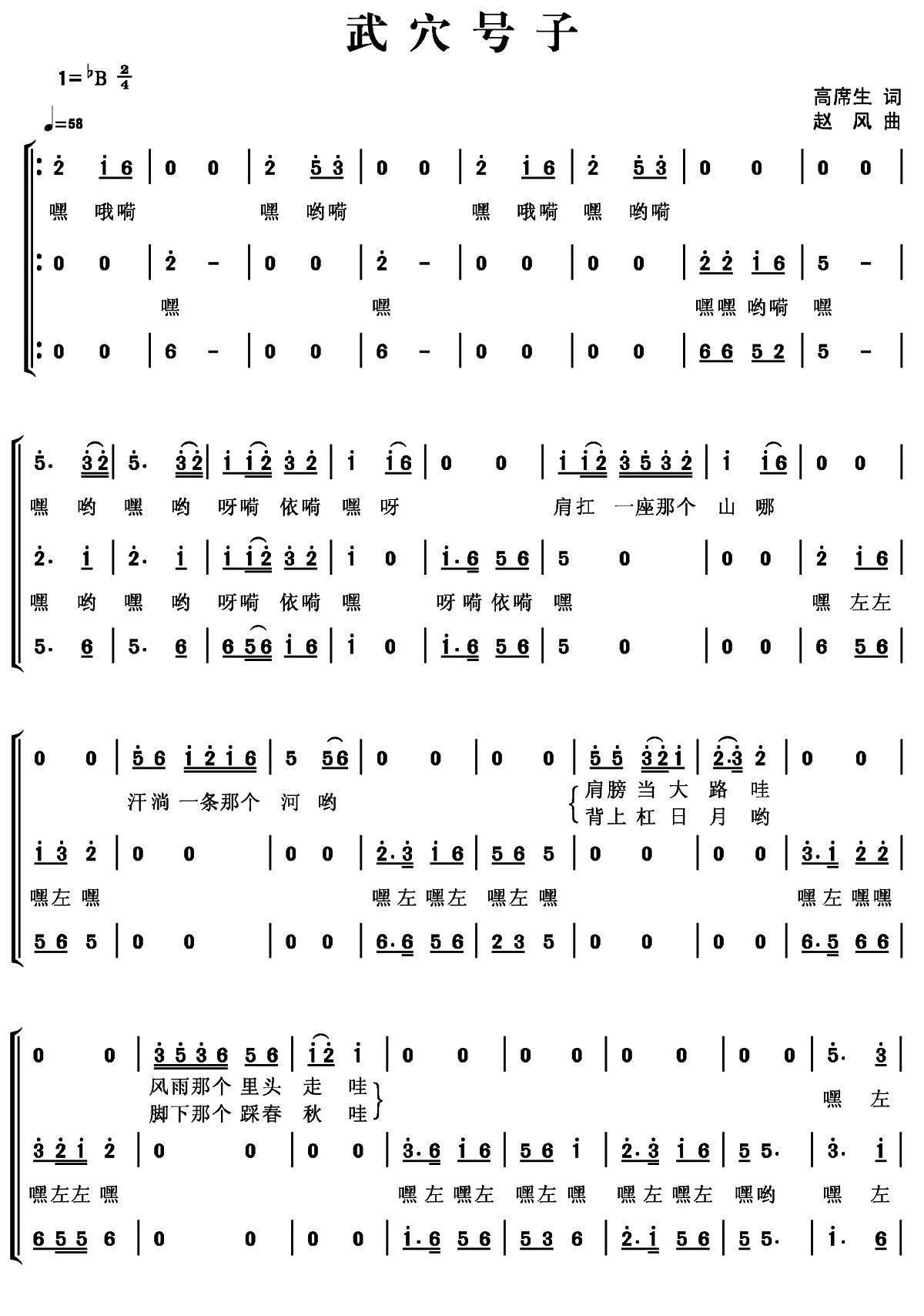 - [歌谱] 嗺咚嗺 号子 打麦歌