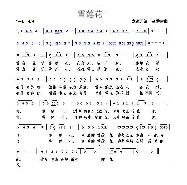 - [钢琴谱,歌谱] 雪莲花 钢伴谱