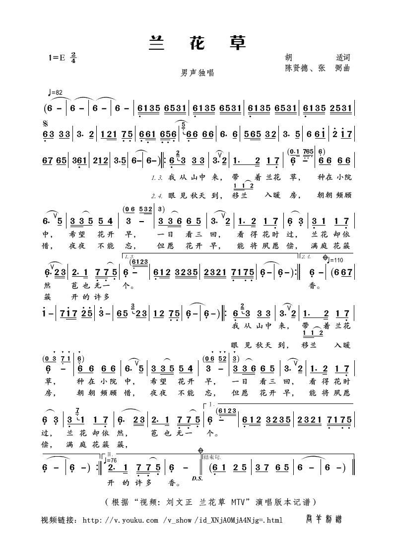 - [歌谱] 兰花草
