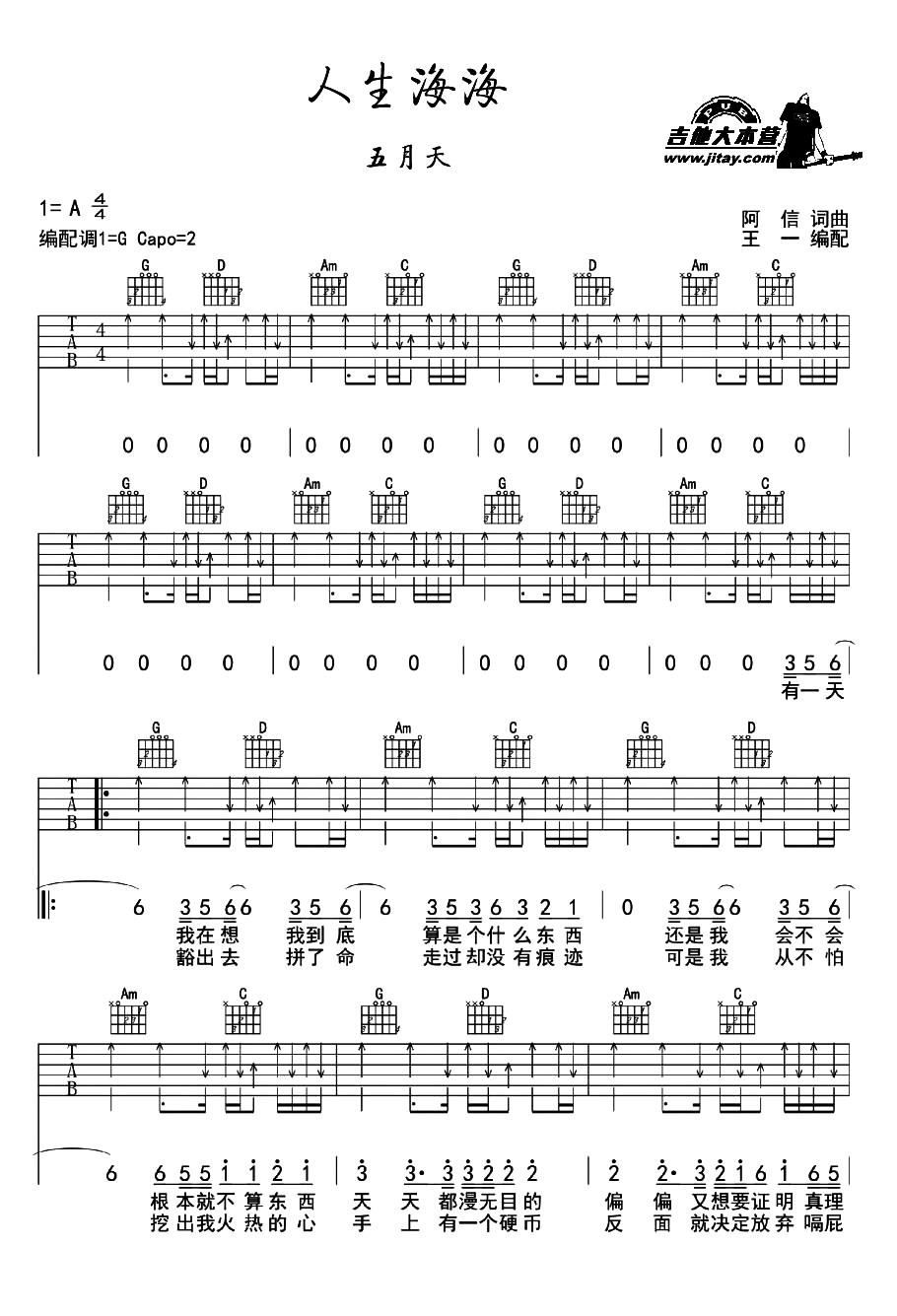 - [歌谱,吉他谱] 人生海海