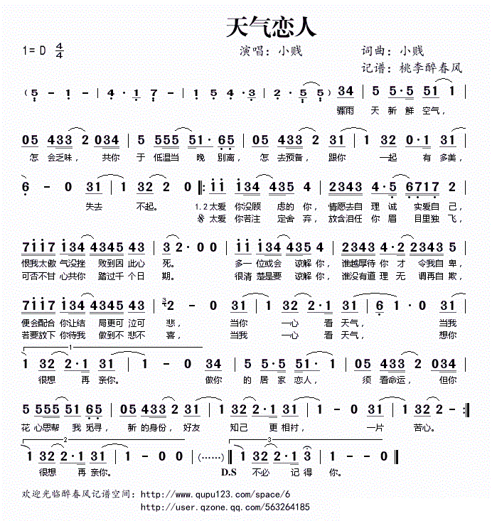 - [歌谱] 换季 小贱