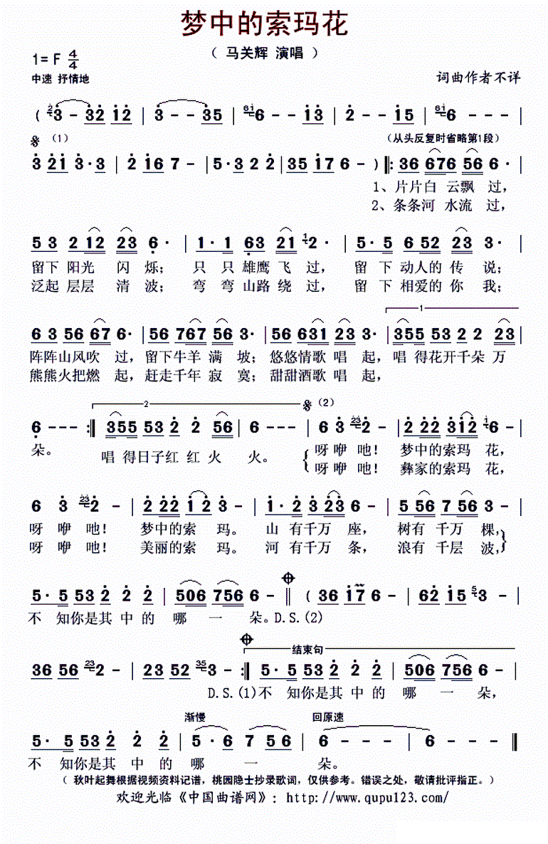 - [歌谱] 梅花 马关辉