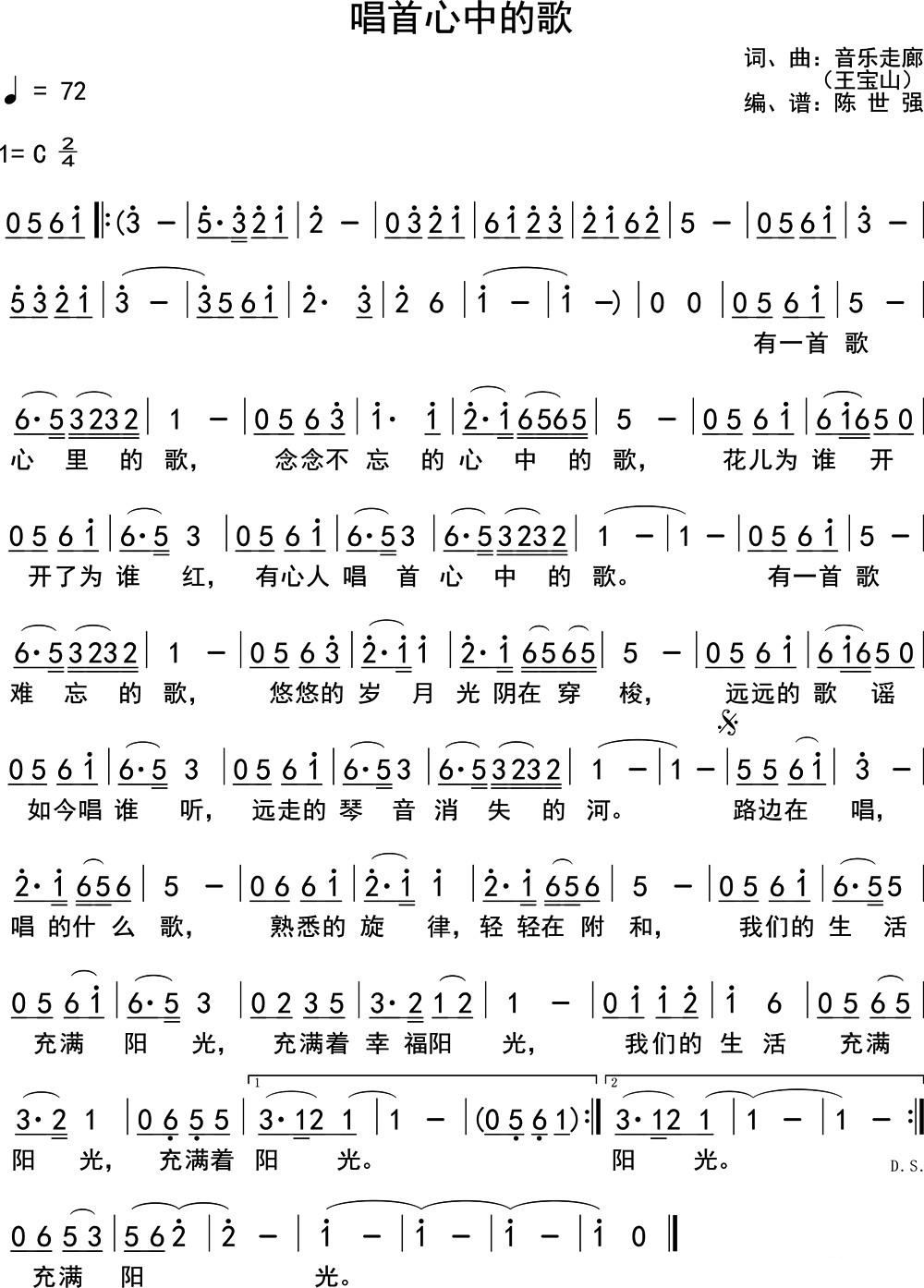 - [歌谱] 唱首心中的歌