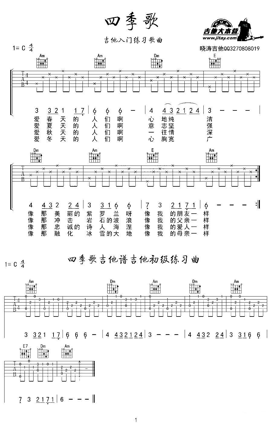 - [吉他谱] 四季歌