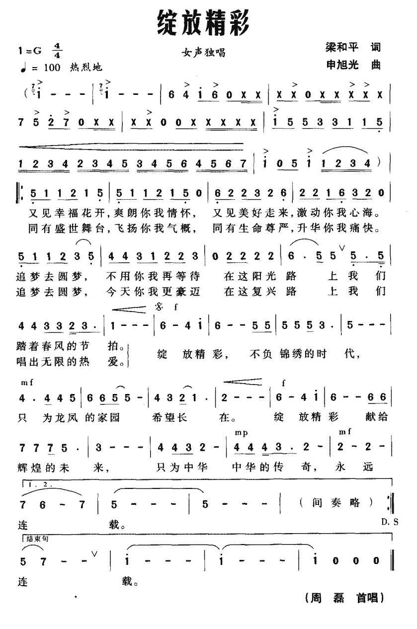 - [歌谱] 绽放精彩 让人生辉煌 李潇倩