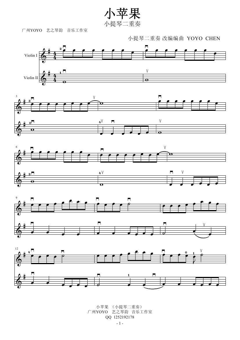 > 小苹果 小提琴二重奏谱