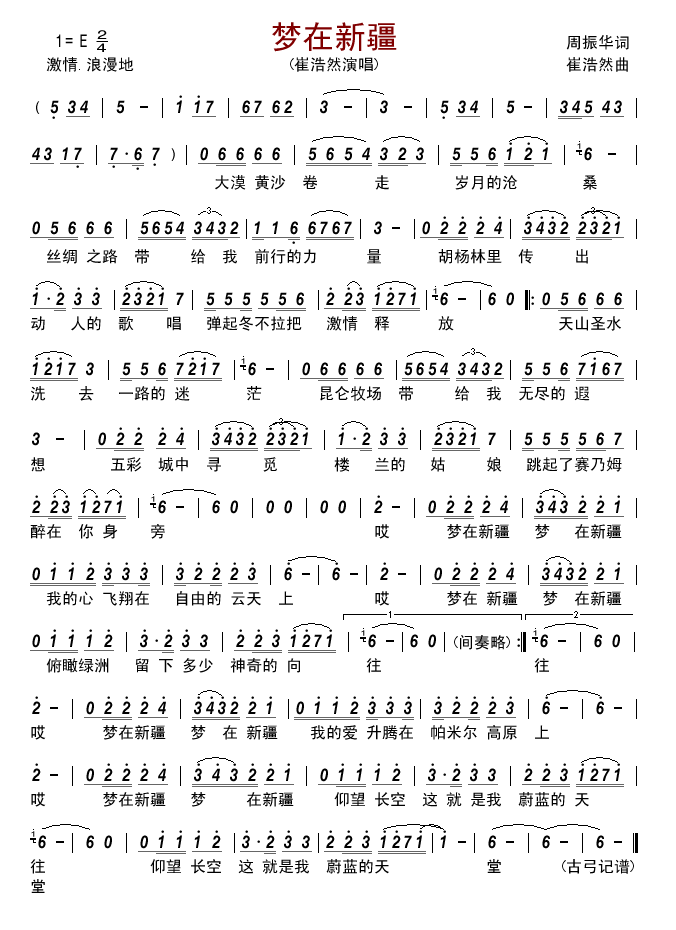 - [歌谱] 梦里新疆