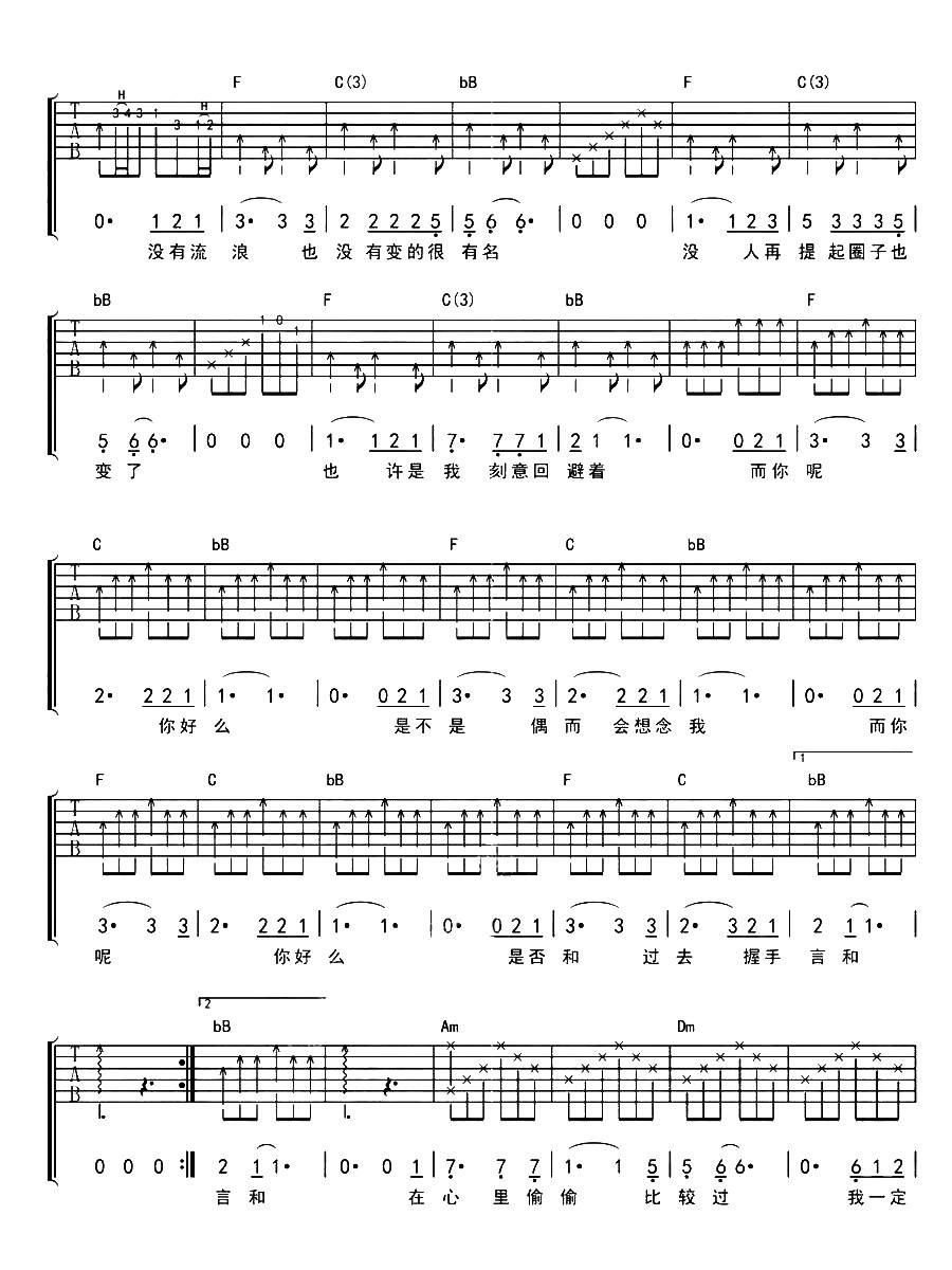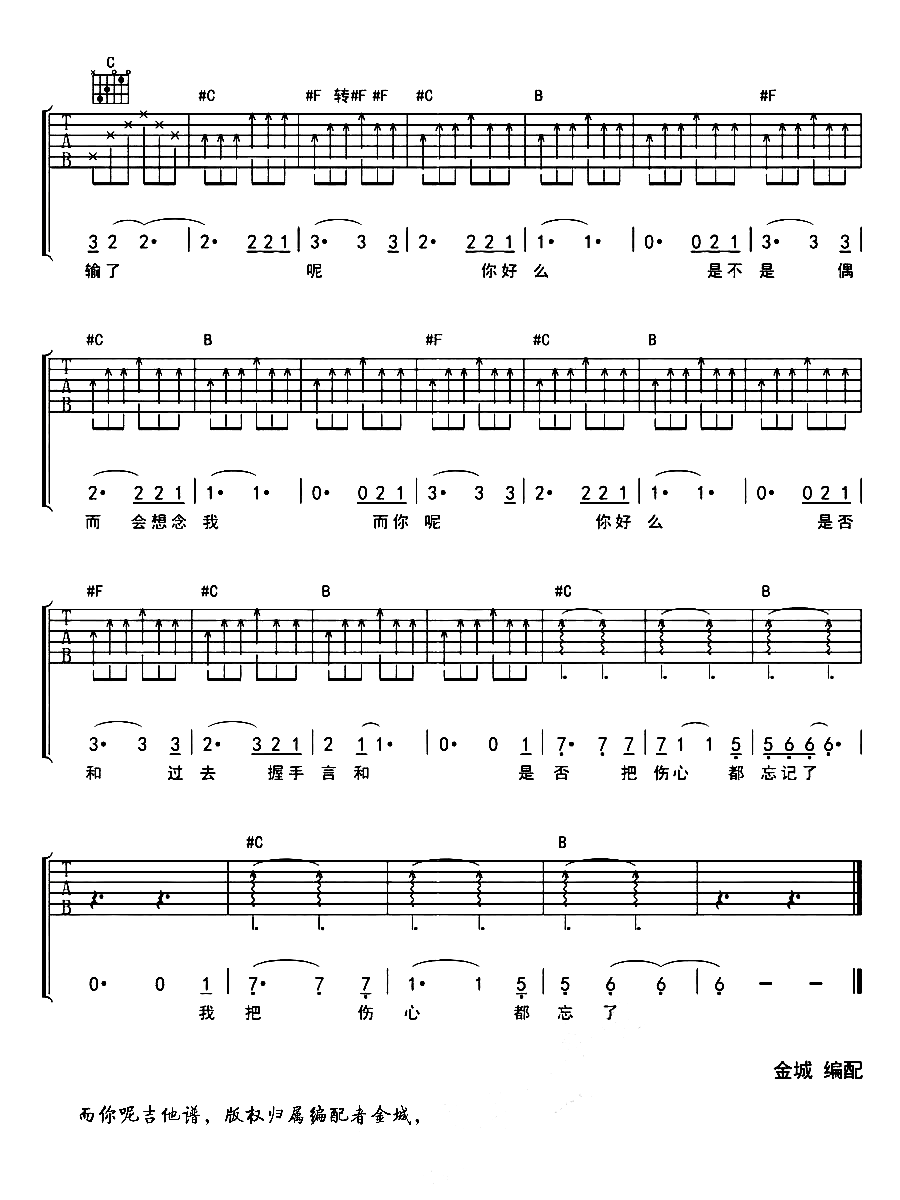 - [歌谱,古筝谱] 想着你睡不着 彩谱