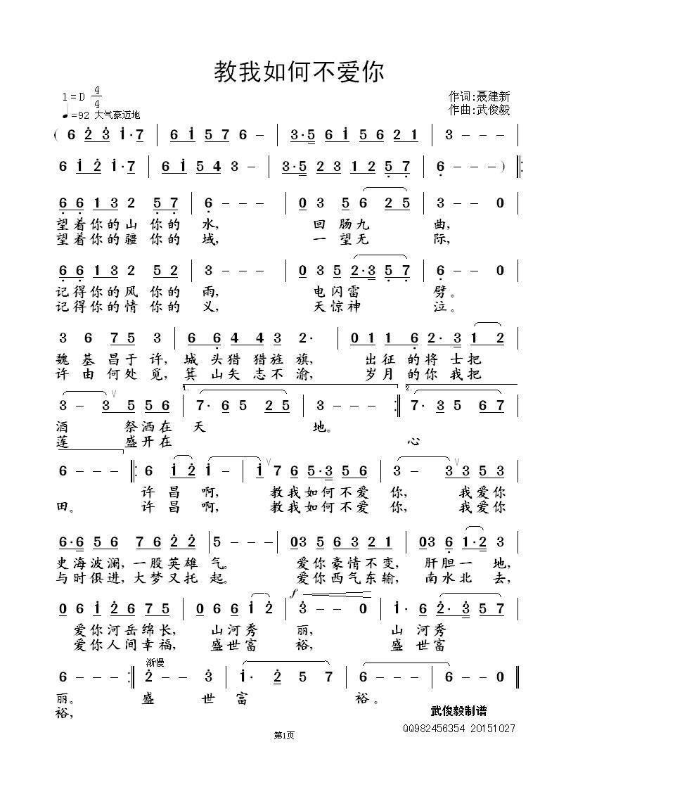 - [歌谱] 教我如何不爱你