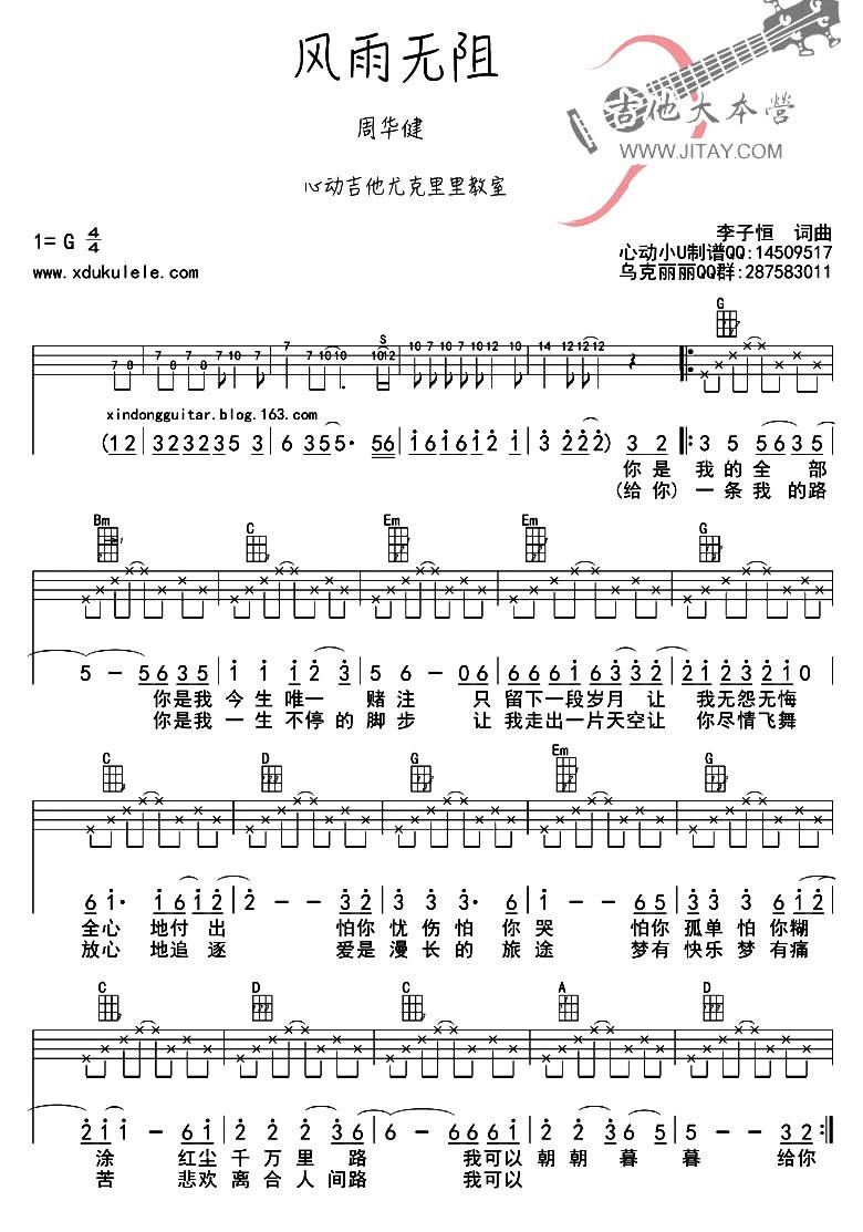> 风雨无阻 ukulele弹唱谱