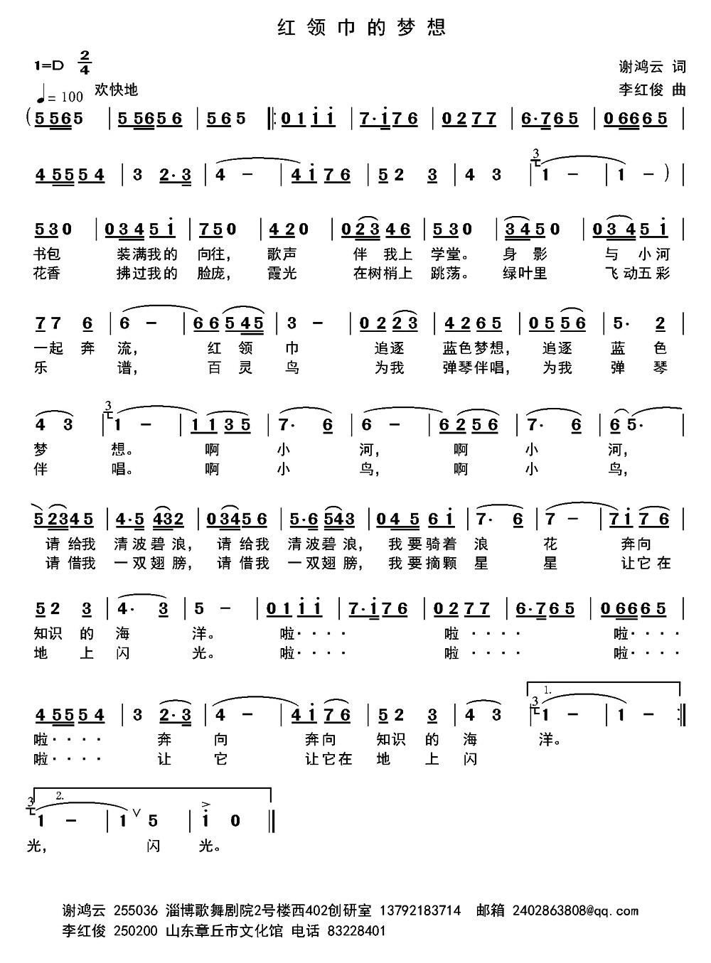 - [歌谱] 红领巾的梦