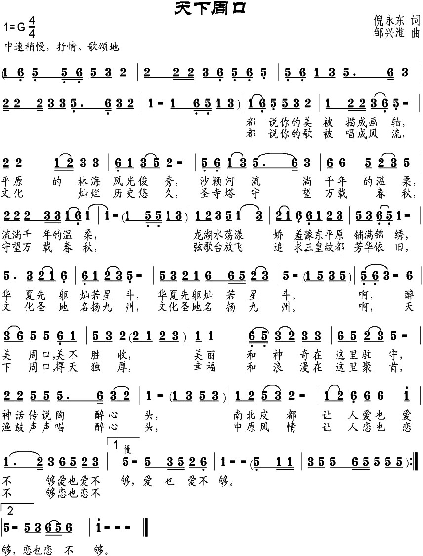 - [歌谱] 我的老家周口市