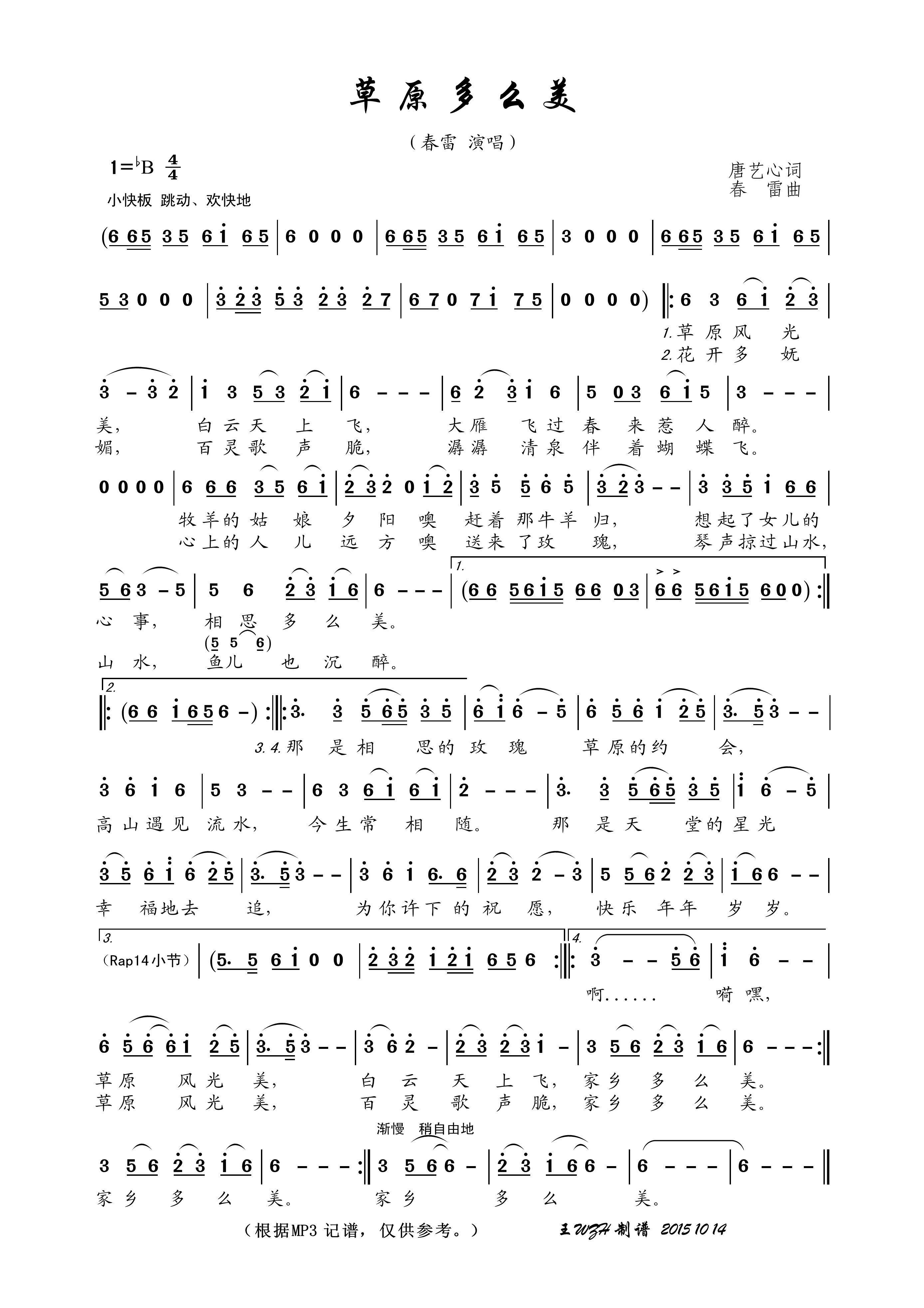 - [歌谱] 我的玫瑰卓玛拉 含说唱旋律