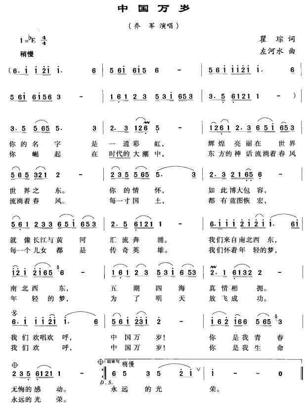 - [歌谱] 中国万岁 宋祖英 秋叶起舞版