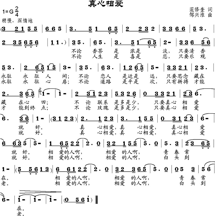- [歌谱] 真心相爱