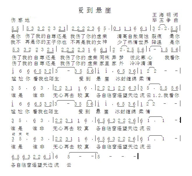 - [歌谱] 悬崖上的爱 阿木 和弦