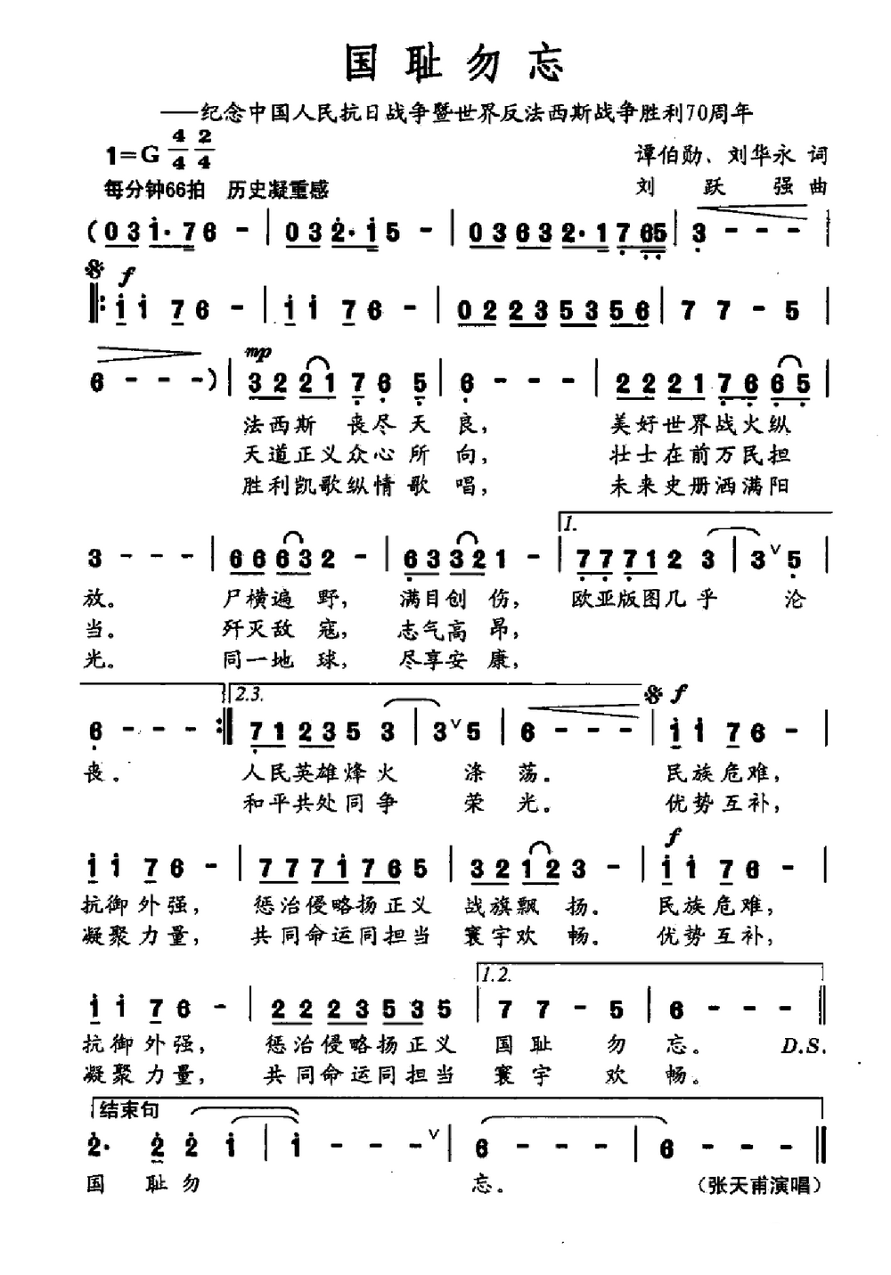 血 火 颂 纪念抗日战争胜利七十周年 缅怀为抗战及中国革命英勇献身的先烈们 男中音或女中音独唱