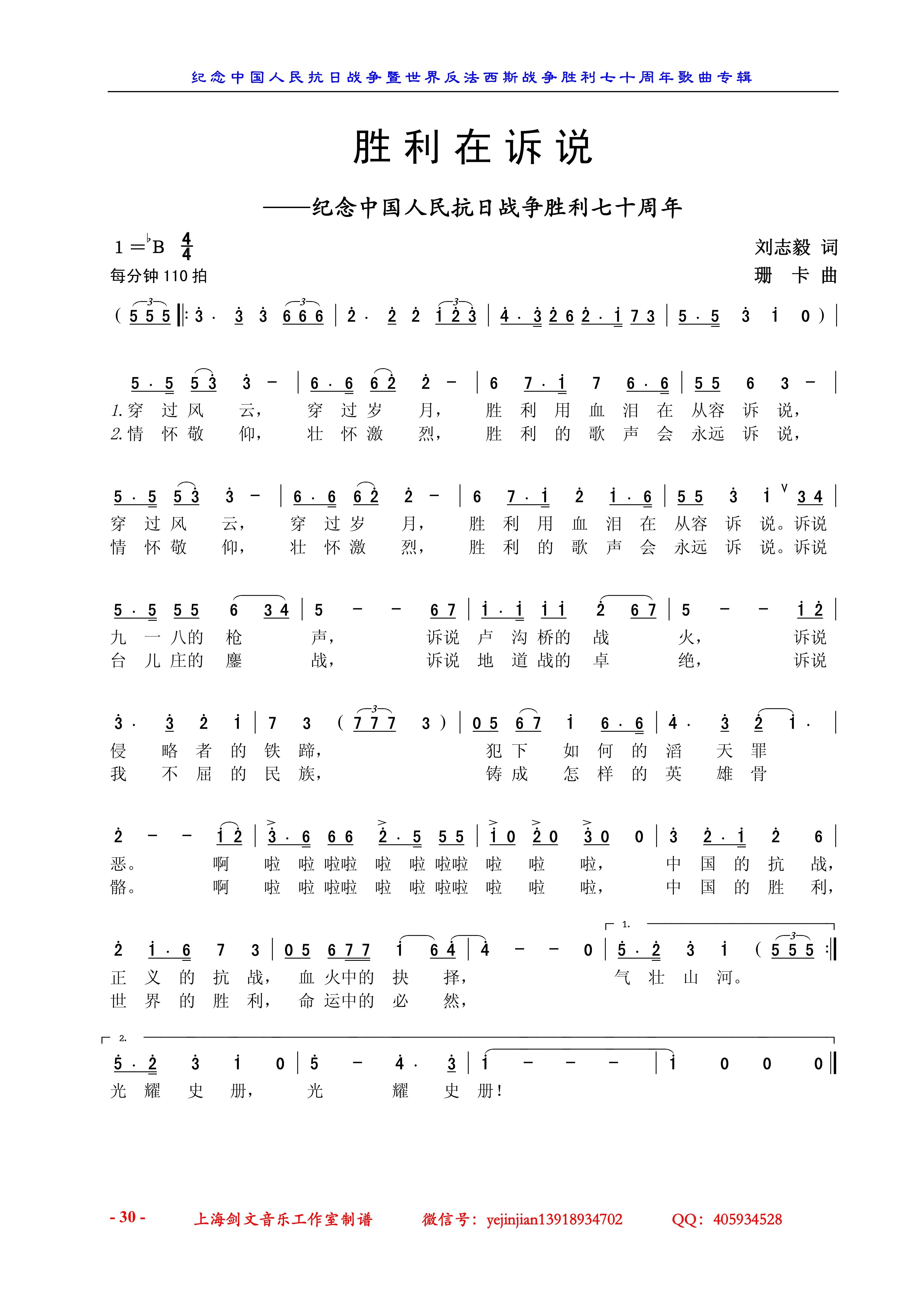血 火 颂 纪念抗日战争胜利七十周年 缅怀为抗战及中国革命英勇献身的先烈们 男中音或女中音独唱