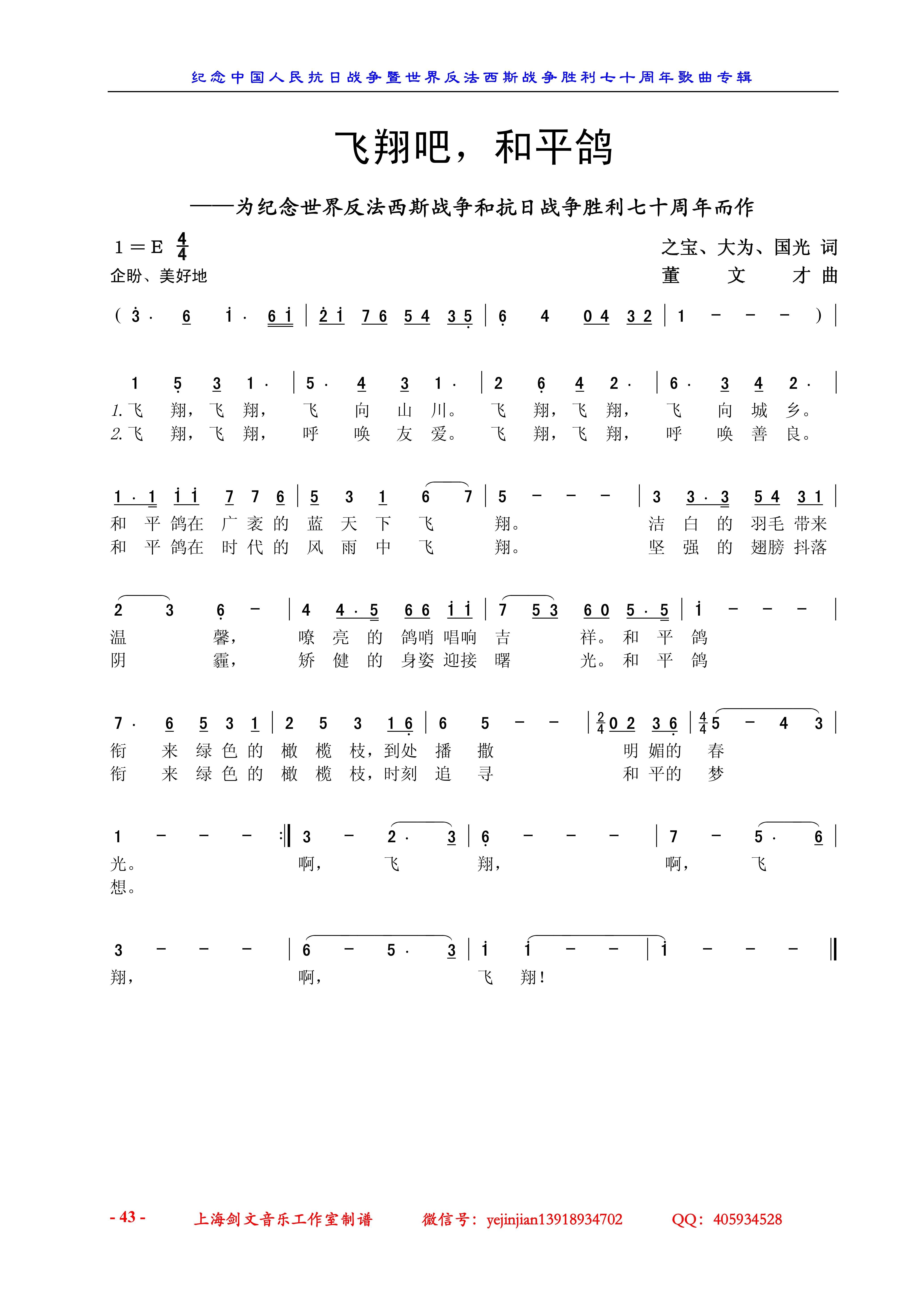 > 飞翔吧 和平鸽 为纪念世界反法西斯战争和抗日战争胜利七十周年而作
