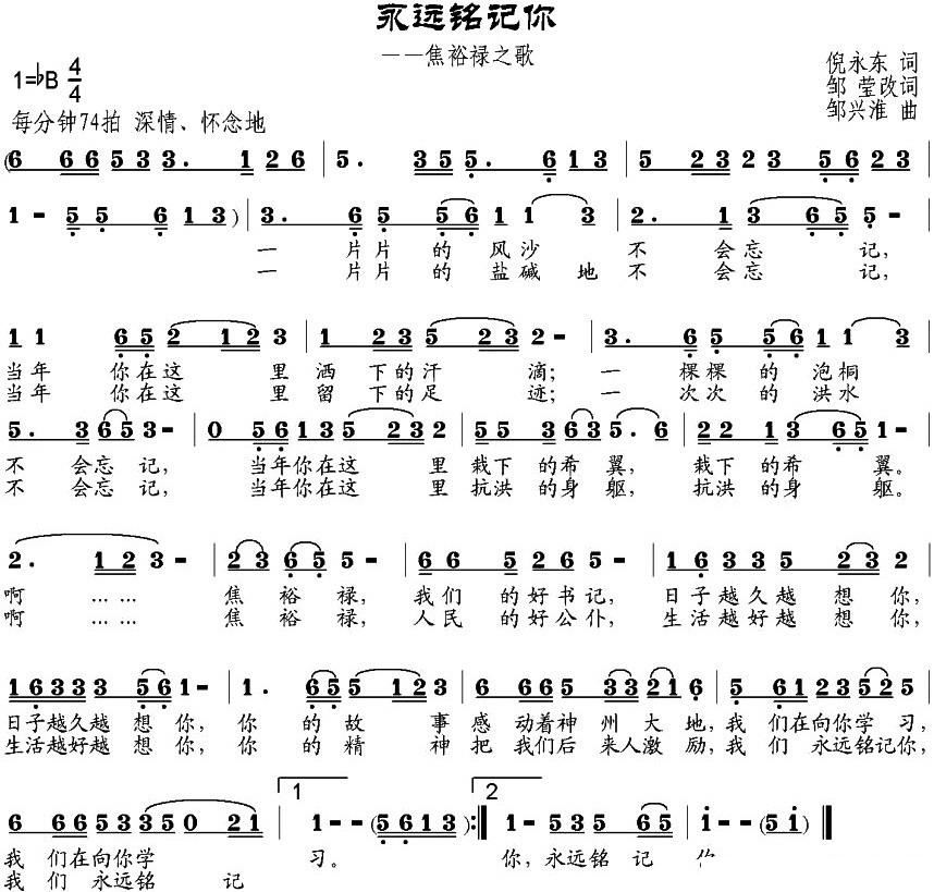 - [歌谱] 我们永远铭记 中国人民抗日战争馆馆歌