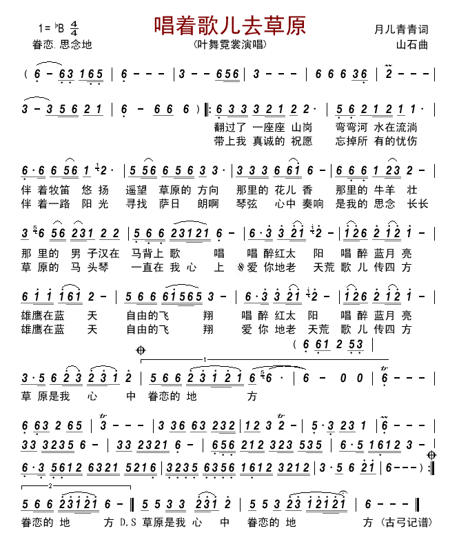 - [歌谱] 草原 我永远的家 叶舞霓裳