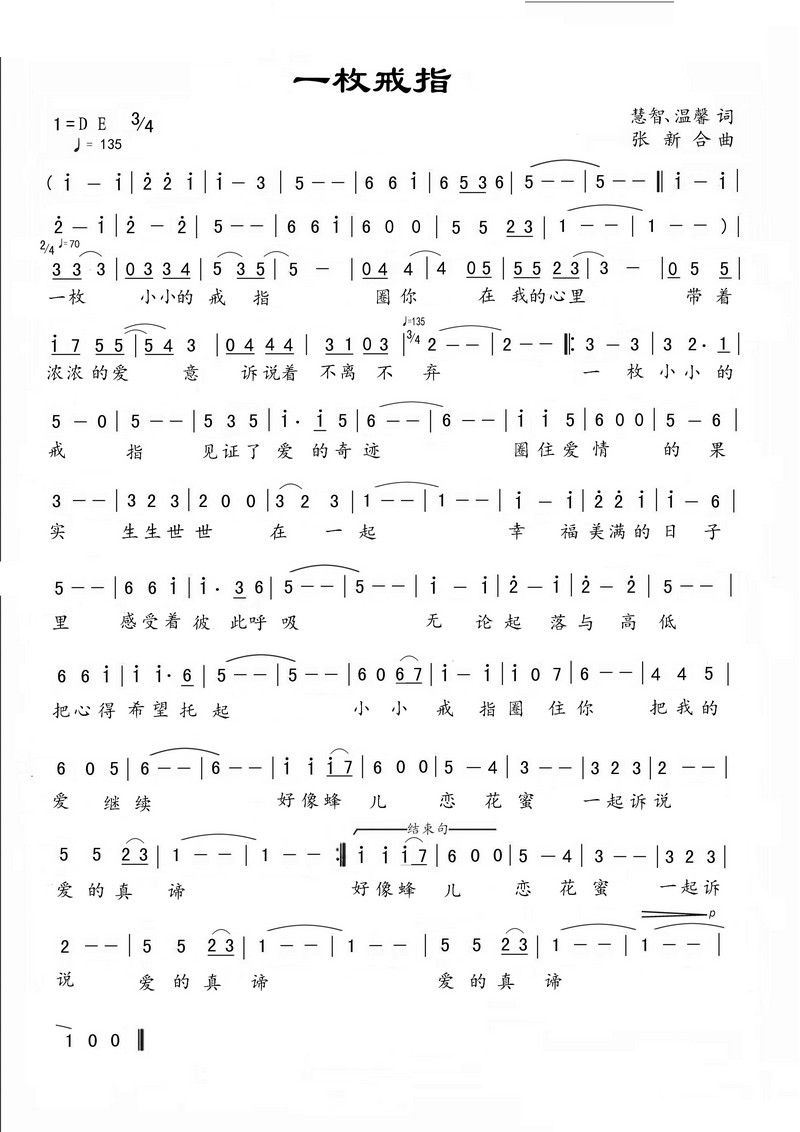 - [歌谱] 丢戒指