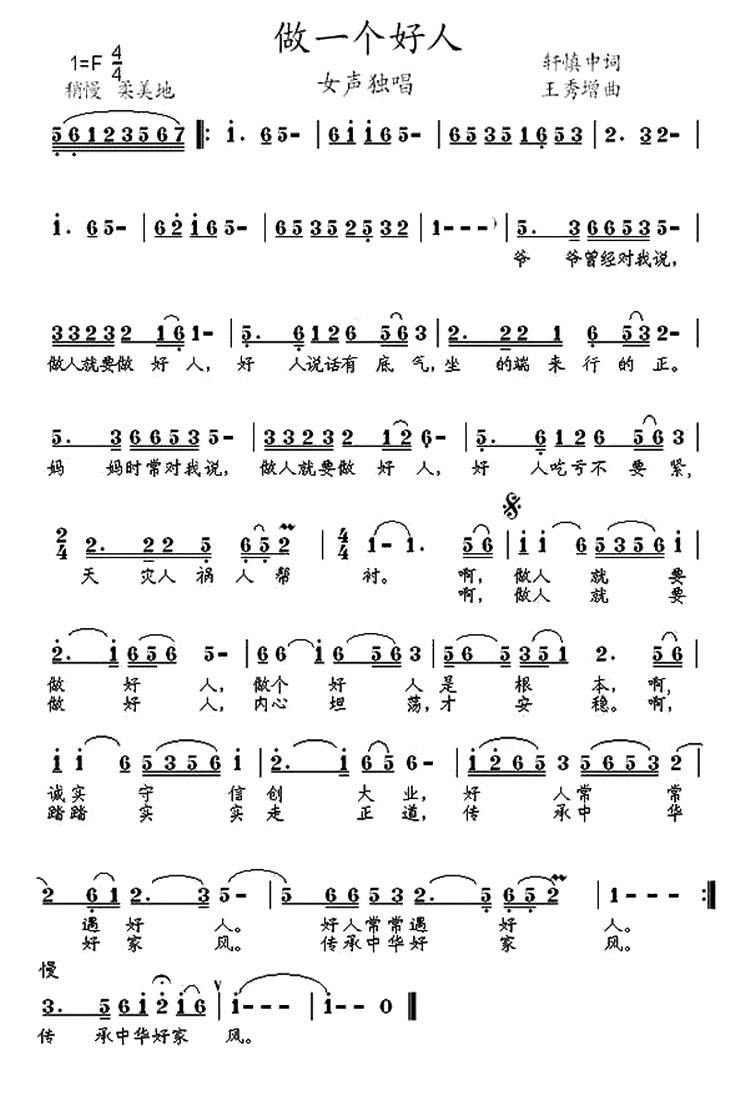 - [歌谱] 做一个好人