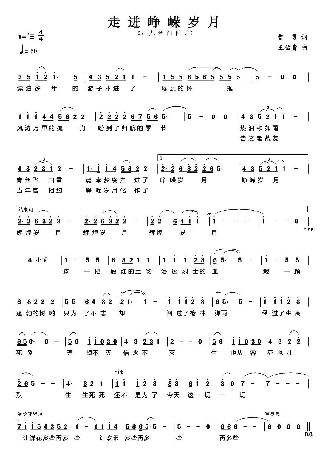 峥嵘岁月 (1P 755x1096 词曲:栾仁杰 喻蓉)