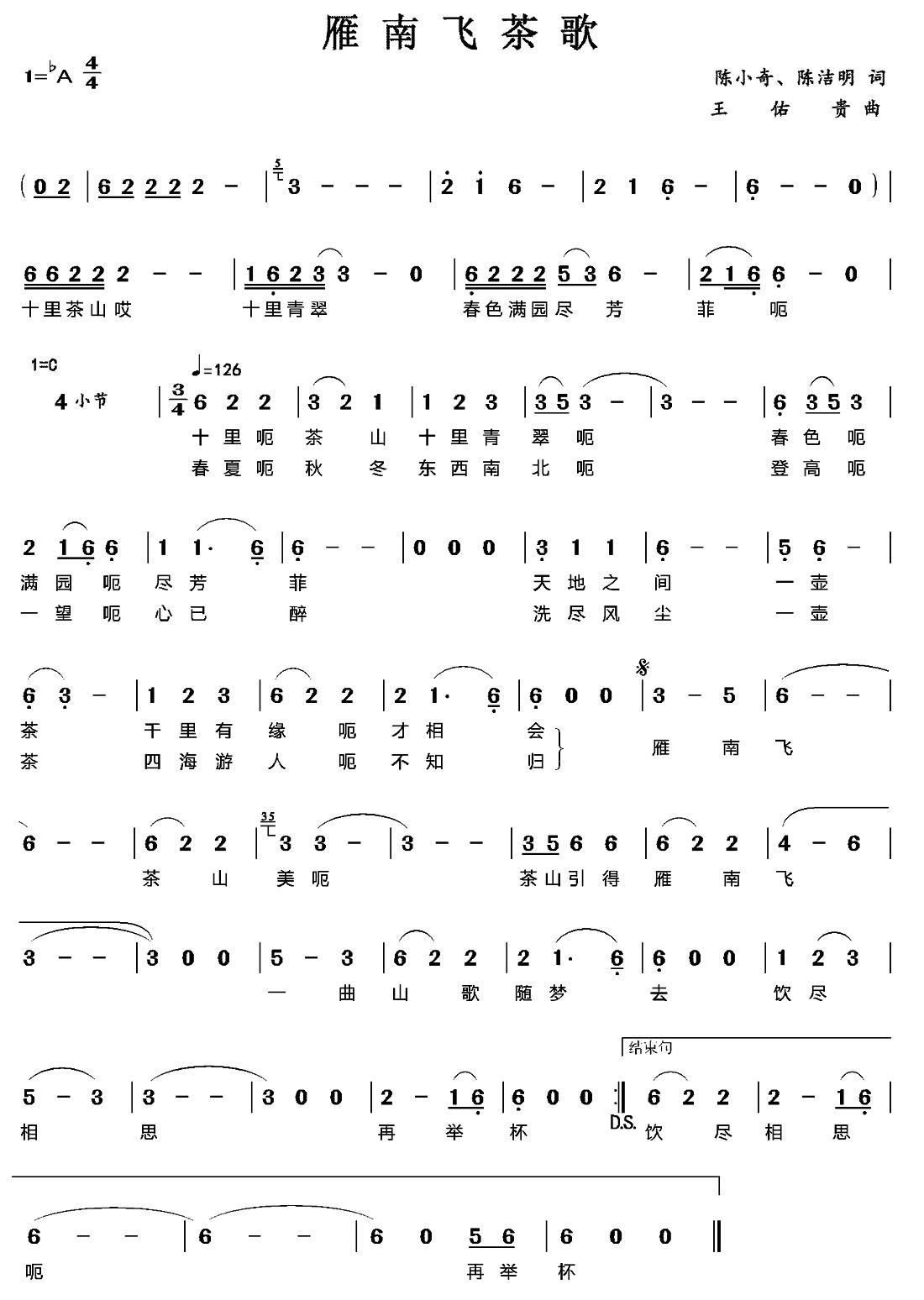 > 雁南飞茶歌