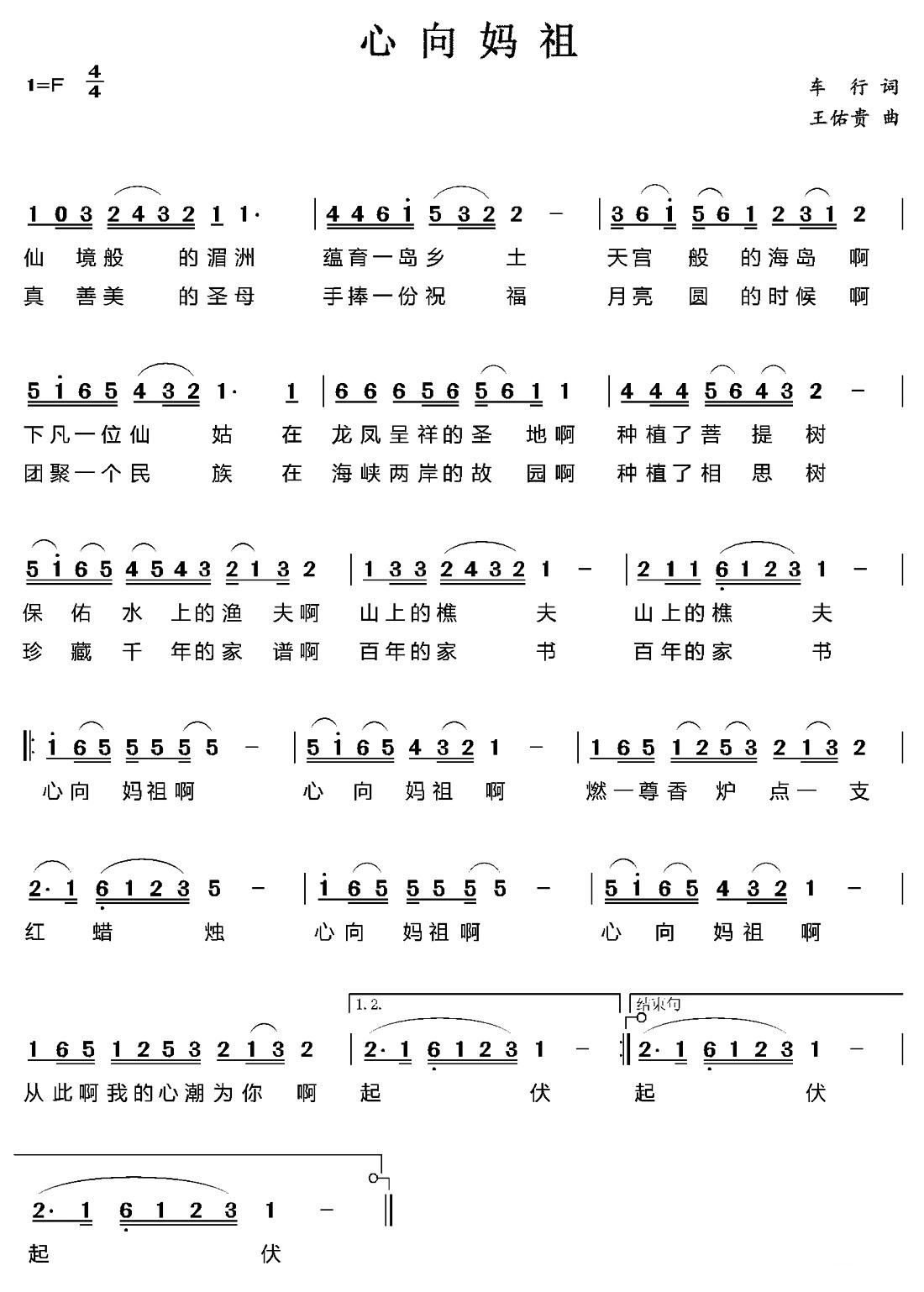 - [歌谱] 妈祖