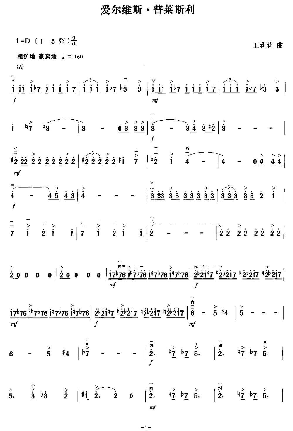 - [二胡谱] 二胡 爱尔维斯 普莱斯利