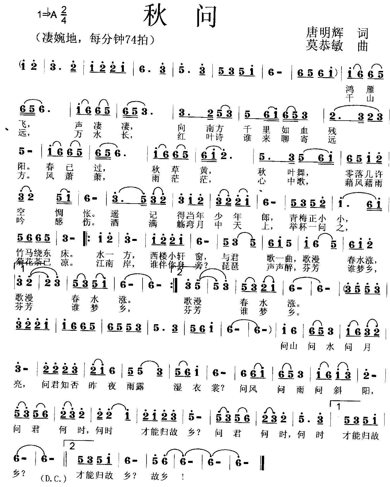- [歌谱] 秋问 电影 张铁匠的罗曼史 插曲