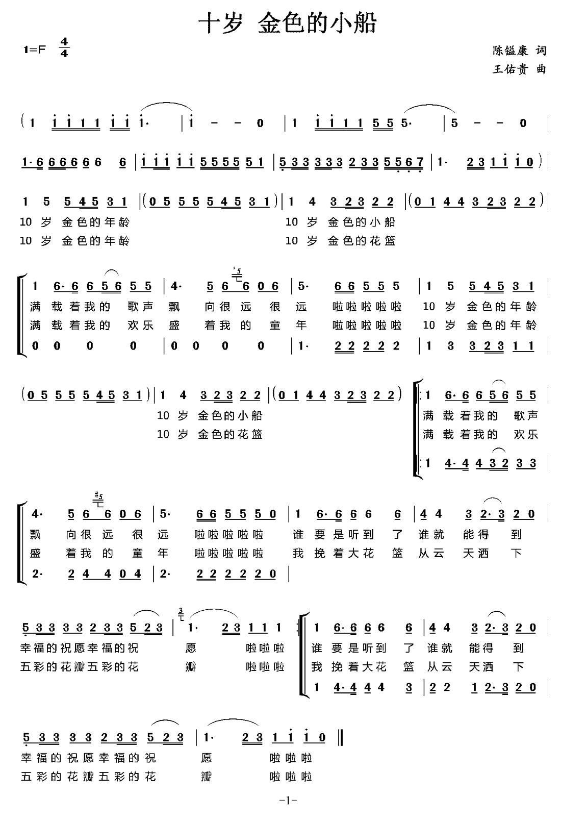 十岁 金色的小船 合唱