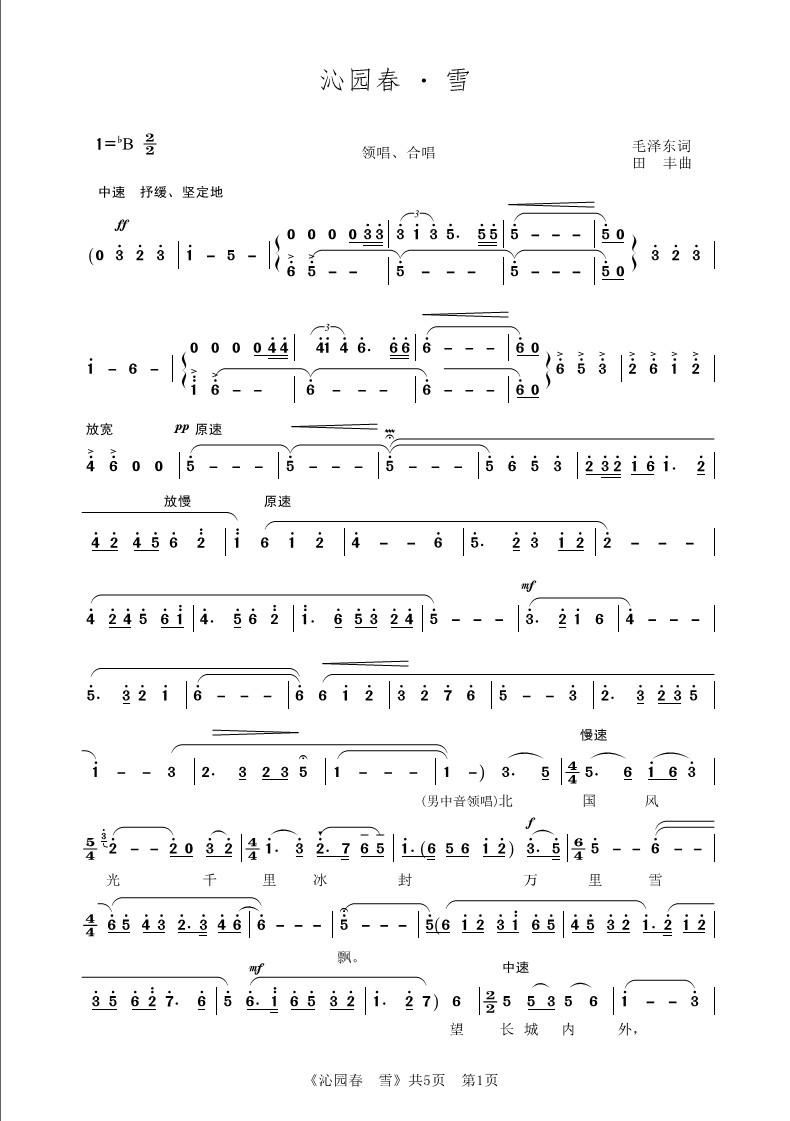 (2P 870x1320 词曲:傅庚辰 毛泽东)