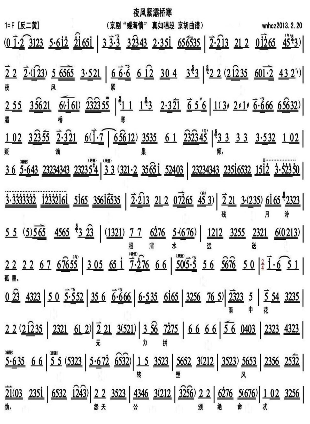 > 夜风紧灞桥寒 蝶海情 选真如唱段 京胡
