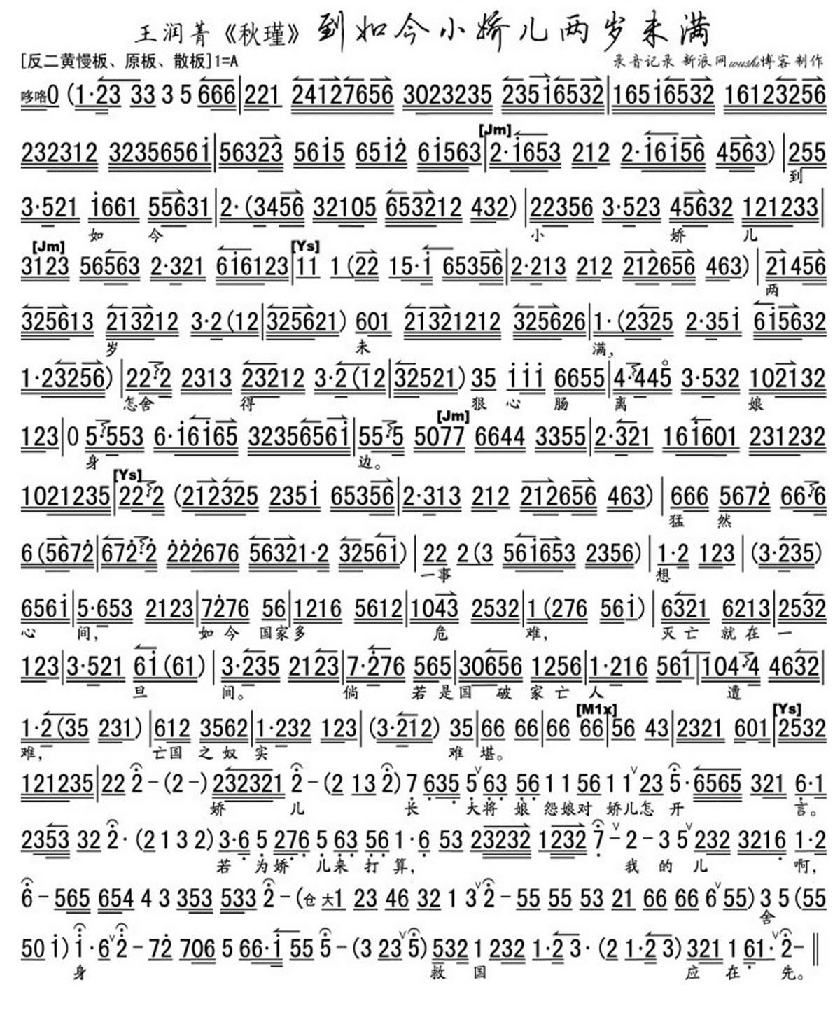 > 到如今小骄儿两岁未满 秋瑾 选段 琴谱